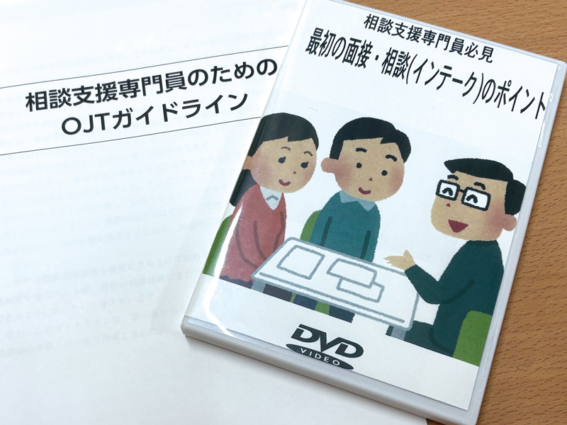 相談支援専門員のためのOJTガイドライン(冊子/左)、「相談支援専門員必見 最初の面接・相談(インテーク)のポイント(DVD/右)」等、相談支援専門員の人材育成のための素材も作成しています。